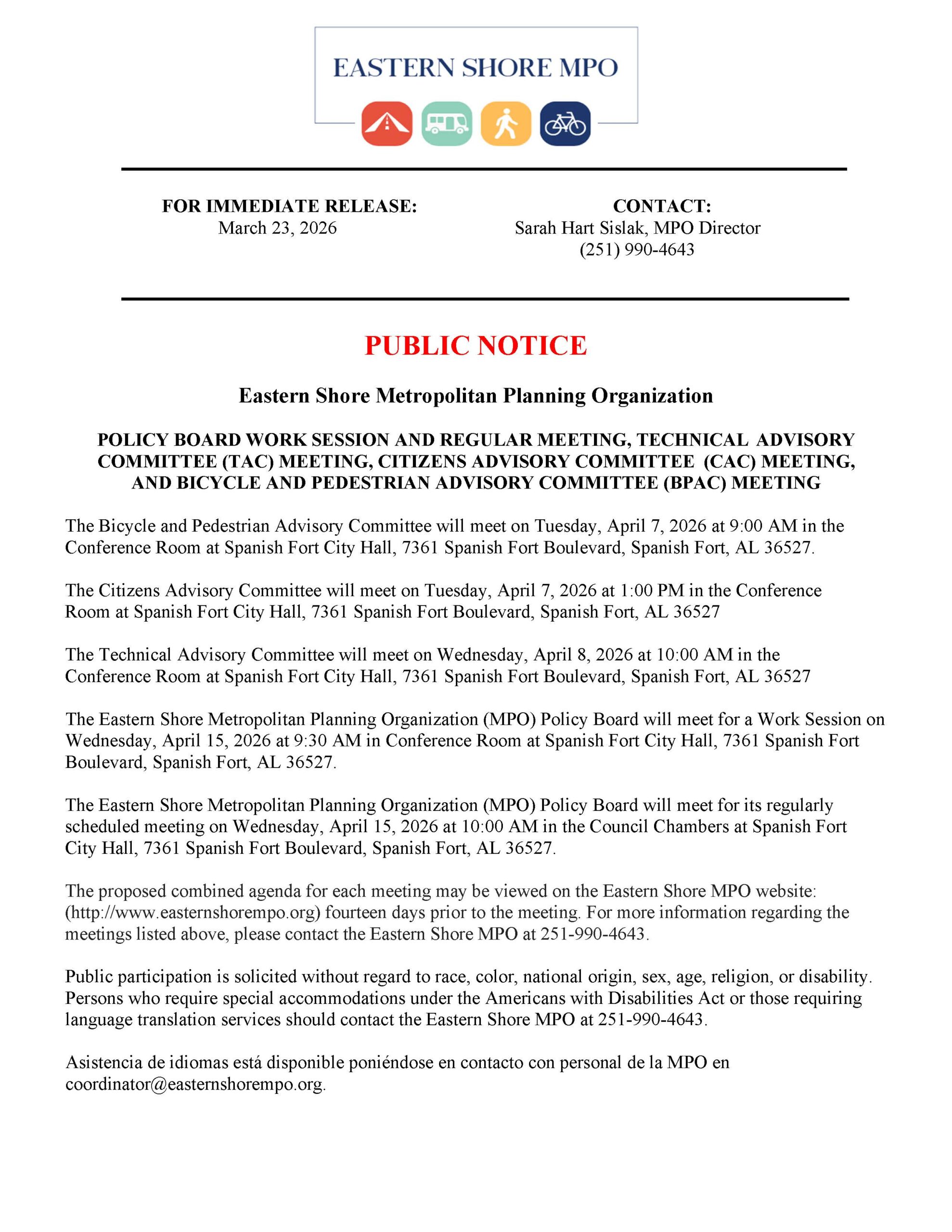 Public Notice – April 2026 Meetings